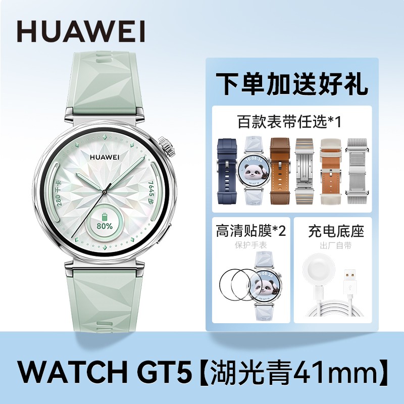 华为HUAWEI手表WATCH GT5女款运动智能商务手表是女士时尚新腕表,其表径为41mm。外观颜色是非常迷人的GT5小表,购买这款手表还会赠送高端表带、保护壳以及价值百元的礼品。