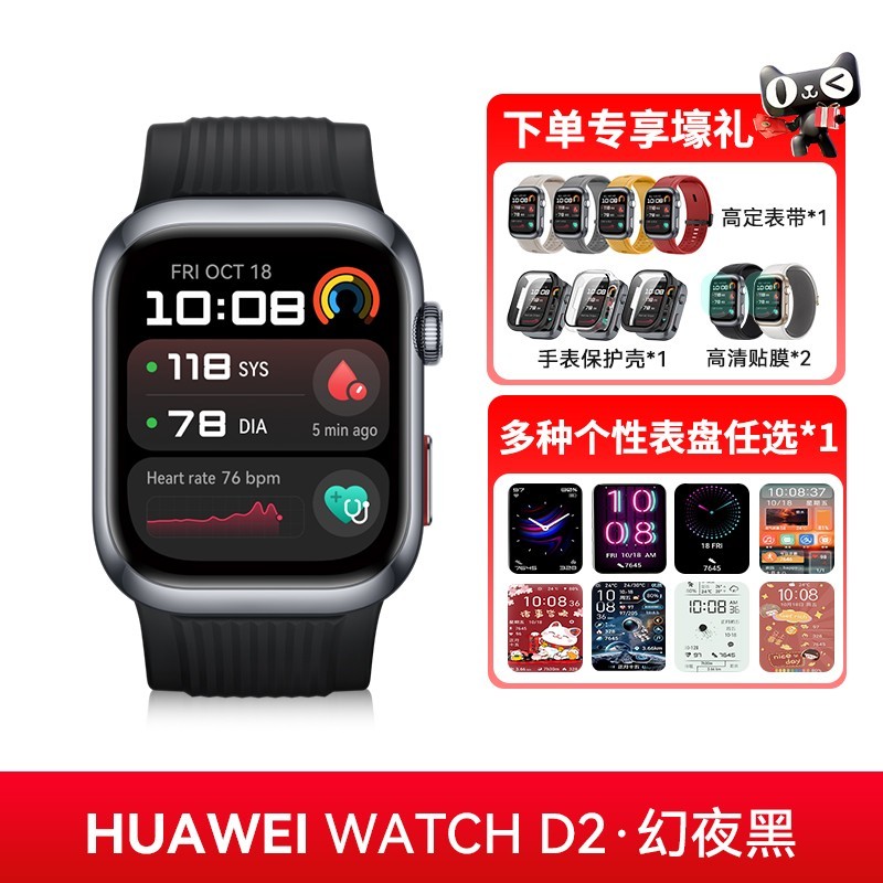 华为 HUAWEI WATCH D2 幻夜黑款腕部动态血压记录仪,现正在天猫商城促销,原价3188元,现参加百亿补贴活动,叠加减300元优惠券及国家补贴9.5折优惠,最终到手价仅需2743.6元。作为一款集精准血压监测与智能健康管理于一体的高端智能手表,华为WATCH D2支持全天候动态血压记录,帮助用户更全面掌握自身健康状况,适合关注血压健康、追求高品质生活的消费者选择。机会难得,喜欢的朋友千万不要错过。