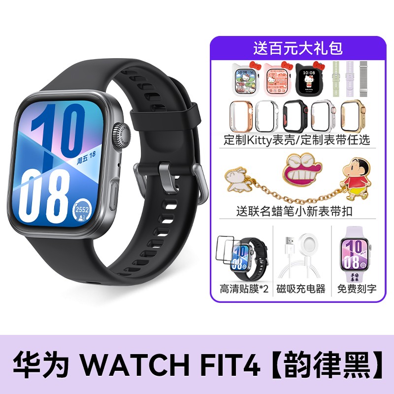 华为 HUAWEI 手表 WATCH FIT 4 是一款集智能运动监测与时尚设计于一体的高性能手环,采用高清AMOLED全面屏,支持全天候血氧、心率监测,具备9.9mm超薄机身与10天超长续航,适合日常佩戴与多种运动场景。此次促销为华为FIT4韵律黑款,搭配氟橡胶表带,舒适耐用,男女皆宜。