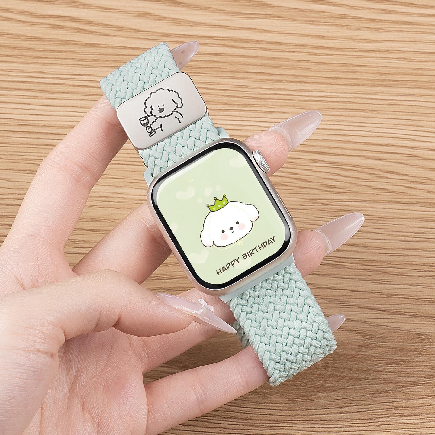 匠戴专为苹果S10手表设计的这款尼龙小狗表带,同样适配iWatch S9/S8/S7/SE/S6等多款型号,采用高密度编织工艺,柔软亲肤更透气,日常佩戴舒适耐用,特别适合运动、通勤等多种场合。表带以时尚薄荷绿为主色调,图案设计清新可爱,微醺小狗图案增添个性魅力。现天猫商城促...