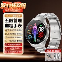 杜能这款银色钢带的智能手表集多种强大功能于一身,它不仅能进行血糖监测,还能对尿酸、血压、血氧趋势进行评估,同时可监测心率、呼吸、睡眠等情况,并且支持通话管理,尽显高端品质。