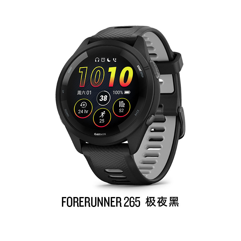 GARMIN佳明265运动手表是一款功能强大的智能腕表,适用于跑步、马拉松、越野、骑行、游泳、徒步等多种运动场景。它不仅能精准监测心率和血氧,还支持音乐播放,内置NFC功能,让你运动时更加便捷。