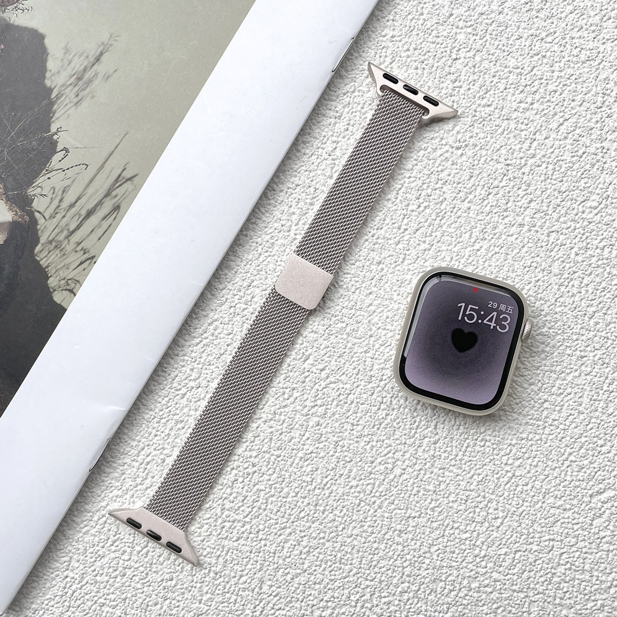 贝菲特ProBefit星光色系列Apple Watch表带全新上市,专为追求时尚与品质的你打造,采用不锈钢材质搭配精致工艺,质感出众,轻盈耐用,磁吸设计方便佩戴,贴合手腕更舒适,小蛮腰回环款型优雅显瘦,尽显女性柔美气质,星光色光泽灵动,适合日常通勤、运动休闲或聚会穿搭,轻松提升腕间魅力。适配iWatch S11/S10 42mm表盘,同样兼容S8/SE/S5/S4/S3/S2/S1等多型号,佩戴稳固不晃动。