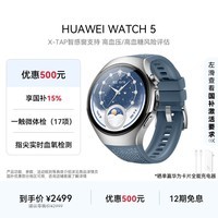 华为HUAWEI WATCH 5 46mm基础款智能手表现重磅优惠,京东活动售价2499元,参与补贴立减15%即374.85元,下单1件实付低至1979.65元,超值入手不容错过!该款手表采用精致不锈钢表壳搭配星河蓝素皮复合表带,质感出众,时尚百搭。搭载首创X-TAP智感窗技术,轻触即可快速获取信息,操作更便捷。支持eSIM独立通信功能,无需手机也能接打电话、收发信息,真正实现智能随行。作为华为旗舰级智能手表,WATCH 5融合卓越性能与全能健康管理,全天候心率监测、血氧检测、睡眠分析等功能一应俱全,助你掌控健康每一步。现在入手仅需1979.65元,性价比空前,速来抢购!