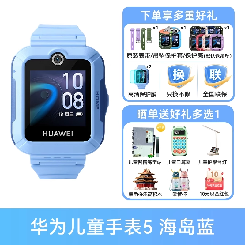 华为 HUAWEI 儿童电话手表 5/5 活力版新耀智能款,是官方正品,专为中小学生打造,男孩女孩都适用。它具备离线定位功能,全网通且防水,还支持视频通话。现在天猫商城这款手表正在做活动,颜色选儿童微信还赠送大礼包,享受 15 天只换不修和 1 年全国联保服务。