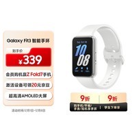 三星 SAMSUNG Galaxy Fit3 智能手环星系银款正在进行优惠活动!这款手环原价 339 元,现在特价至 288.15 元,需叠加 15%起减 50.85 元优惠活动即可到手。Galaxy Fit3 有水墨黑、星系银、樱落粉三款配色,配备 1.6 英寸矩形显示屏,分辨率达 256402,机身仅重 18.5 克,携带轻松。它支持 5ATM 和 IP68 级防尘防水,还有光线感应器、气压针,采用铝材喷砂处理,配有表带快速释放按钮。单次充电续航最长 13 天,30 分钟能加速充电至 65%,功能实用又强大,值得入手。