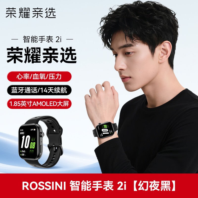 荣耀HONOR Rossini智能手表2i是一款适合学生男女的新款智能手表。它具备原装蓝牙通话功能,让沟通更便捷。手表拥有轻薄的外观设计,搭载1.85英寸的大屏,视觉体验出色。而且它还具备防水功能,无惧日常溅水等情况。同时,它能全天候进行健康监测,精准监测心率,时刻关注你的健康状况。