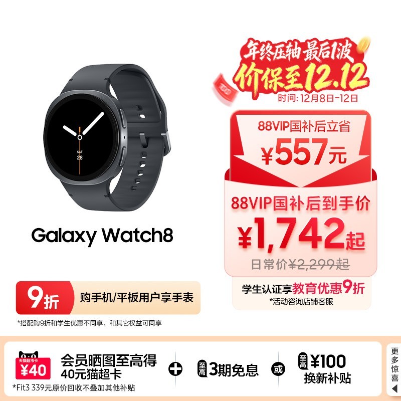 本文属于原创文章,如若转载,请注明来源:三星Galaxy Watch8智能手表8.5折促销https://smartwear.zol.com.cn/1095/10958531.html