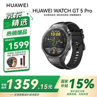 华为 WATCH GT 5 Pro 智能手表 46mm 曜石黑搭配黑色氟橡胶表带,外观时尚大气,彰显科技与品位的完美融合,采用高清大屏设计,显示细腻清晰,支持多种运动模式和健康监测功能,包括心率、血氧、睡眠监测及压力管理,助力用户全面掌握身体状况,内置强劲续航电池,持久耐用,同时支持快充技术,满足全天候使用需求,现优惠特价1359.15元,原价1519.80元,叠加15%起减239.85元活动后到手价仅需1359.15元,性价比出众,机会难得,感兴趣的消费者不容错过。